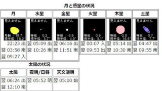 天体・自然現象 今日の星空を知るNo.1のおすすめサイト 国立天文台の「今日のほしぞら」は非常に面白いサイトです。地方別に、見たい時間の星空や星座の位置がわかるとともに、月や惑星の位置もわかるようになっています。都会では見える星も限られていますが、これを利用すると見えない星座もイメージできます。 2018.07.03 天体・自然現象