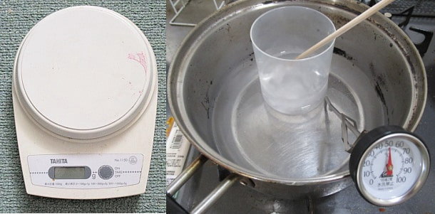 を用意して、それらを50℃程度の温度で溶かします。